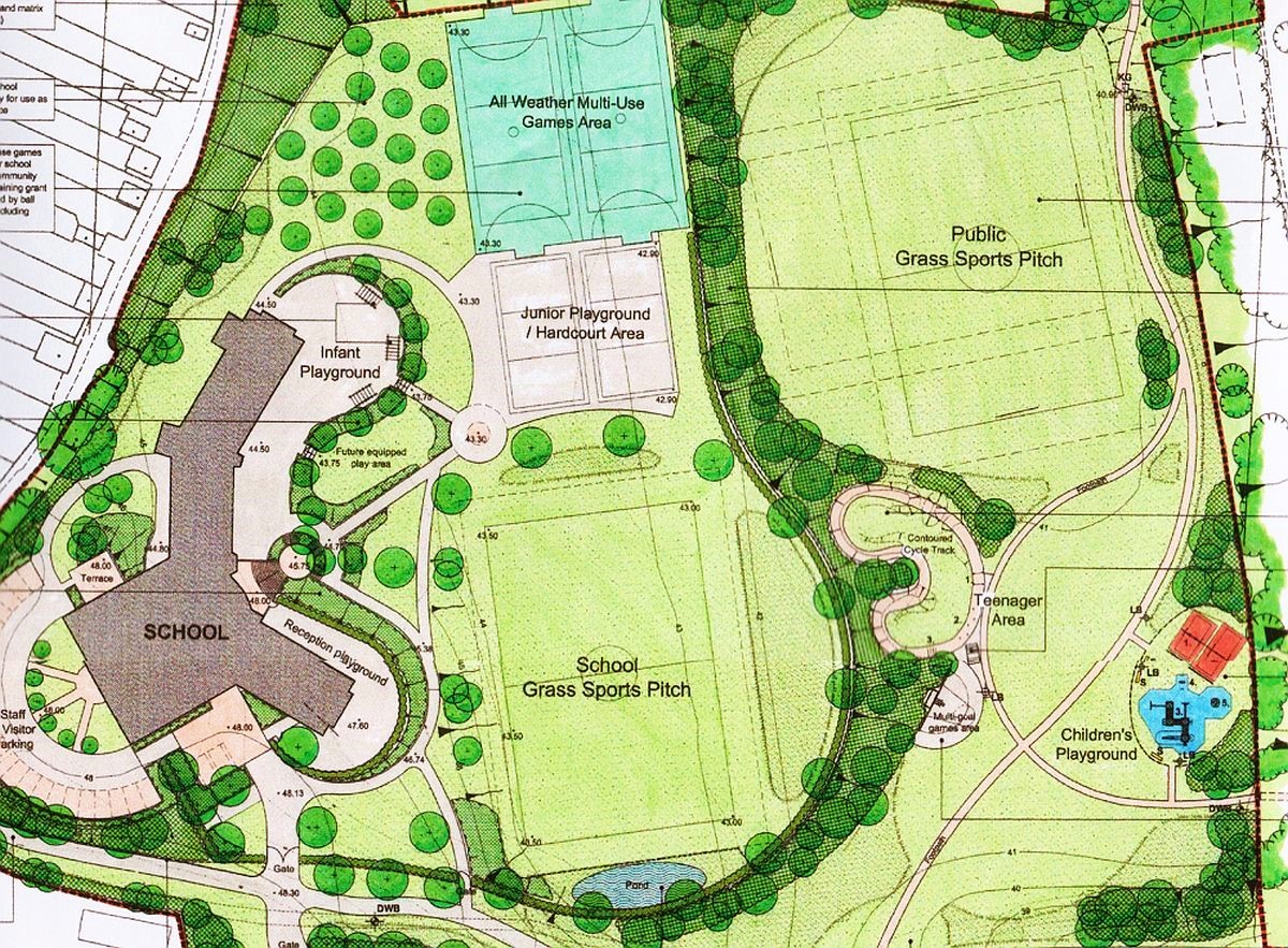 We prepared landscape masterplan proposals for its relocation to an existing recreation ground site. The school only needed about a third of the total site, with the remainder being redesigned and upgraded to provide enhanced public recreational facilities. The aim of the design was to integrate the school into the site, employing organic shapes to work with the steeply sloping and terraced landform.